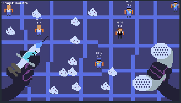 A project I'm working on, but didn't really finish, for the 2025 GMTK Game Jam. I want to add some way for the cops to die, some elements like a suspicion meter, and calling the cops to locations, selling drugs to crooks, addiction wearing off, etc.
